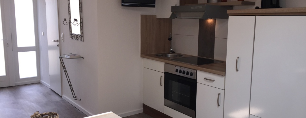 kleine Wohnung im Erdgeschoss: 1 Wohn- und Schlafzimmer (Schlafsofa), separate voll ausgestattete Küche, Duschbad